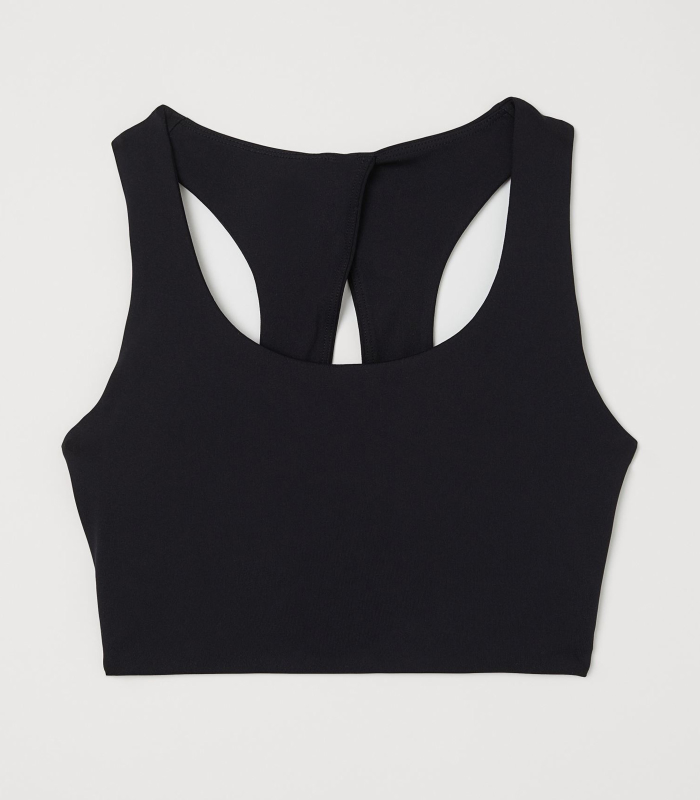 Sports bra in fast-drying functional fabric designed to help keep you dry and cool while exercising. Wide shoulder straps, lined cups with removable inserts that shape the bust, and a racer back with a cut-out section. Concealed elasticated trim at the hem and a hook-and-eye fastening at the back. The polyester content of the bra is recycled. Maximum support suitable for high-intensity workouts.