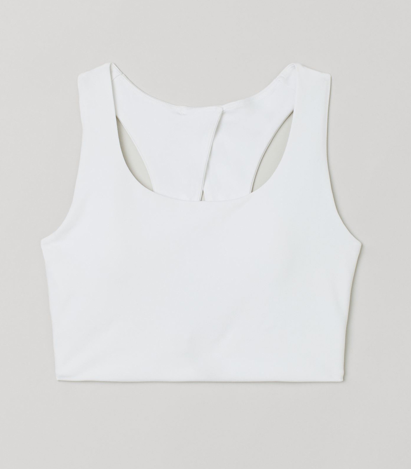 Sports bra in fast-drying functional fabric designed to help keep you dry and cool while exercising. Wide shoulder straps, lined cups with removable inserts that shape the bust, and a racer back with a cut-out section. Concealed elasticated trim at the hem and a hook-and-eye fastening at the back. The polyester content of the bra is recycled. Maximum support suitable for high-intensity workouts.